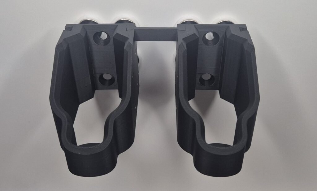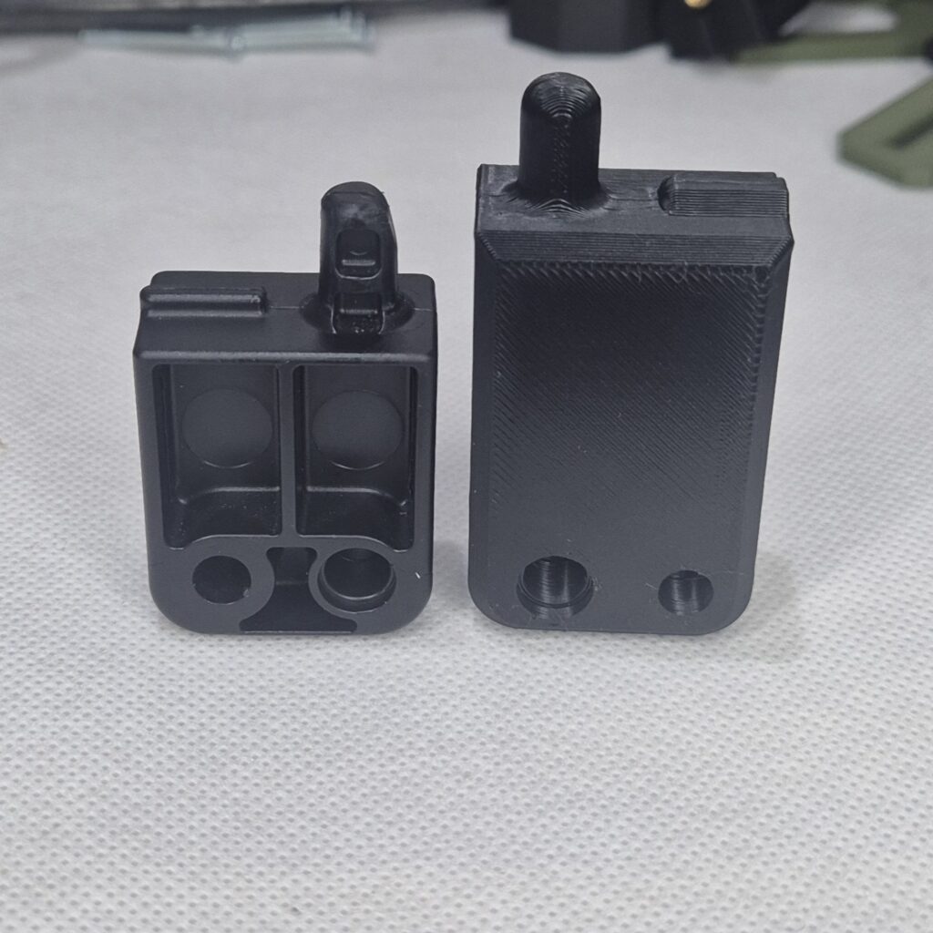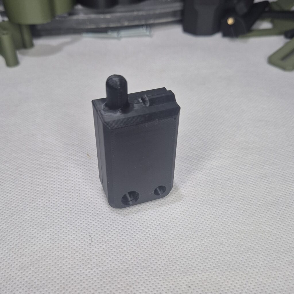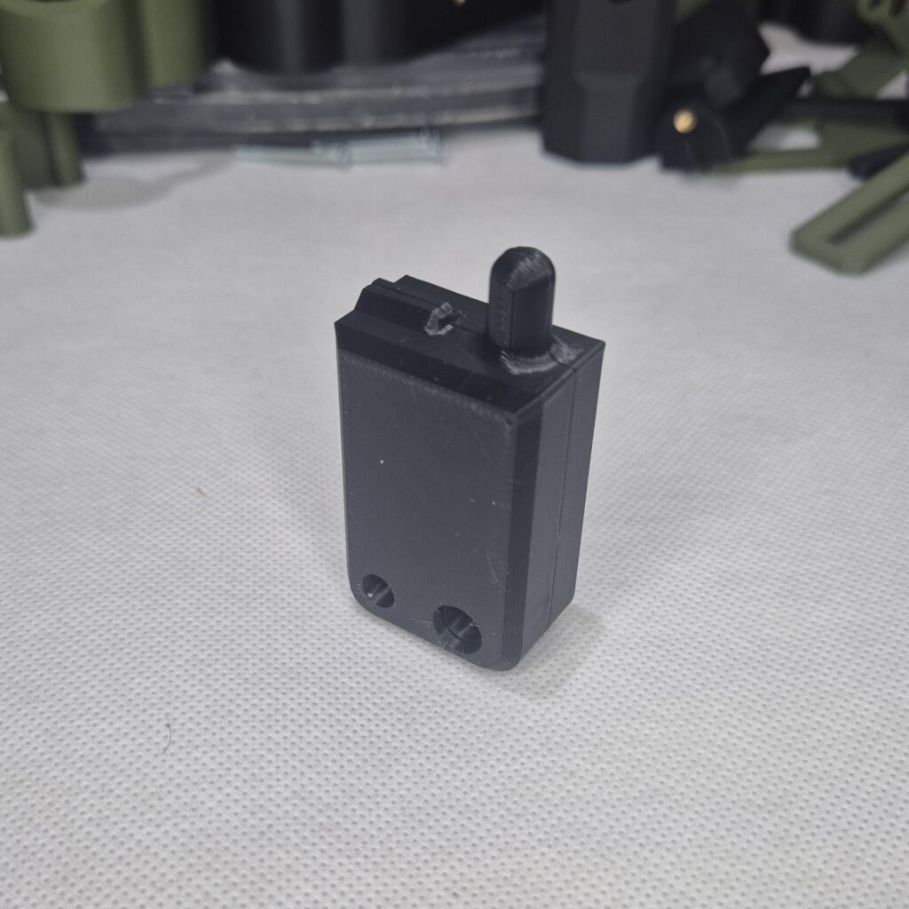 Spinki jak i osłony do szyny picatinny, wykonane z PETG-CF jest to ulepszona wersja PETG o włókna węglowe nadaje chropowatą strukturę i większą odporność na warunki zewnętrzne jak i temperaturę.