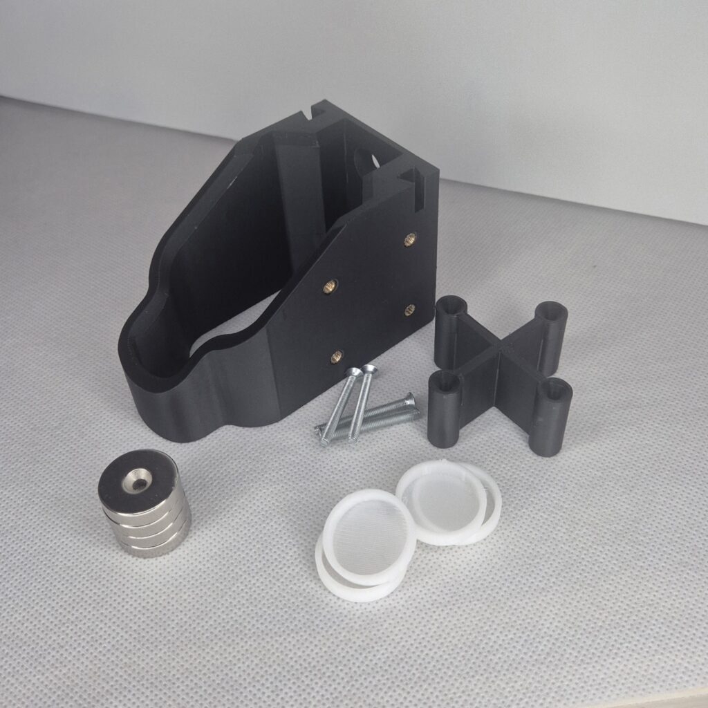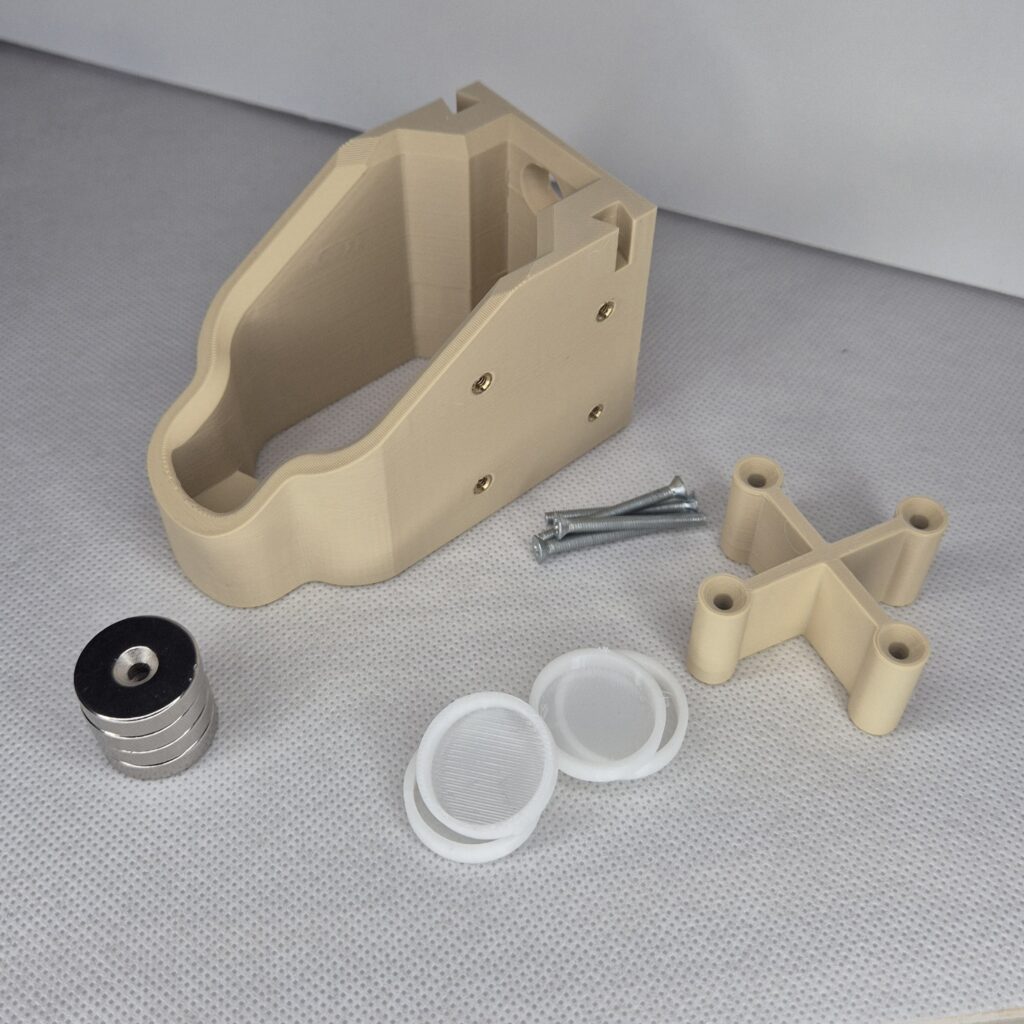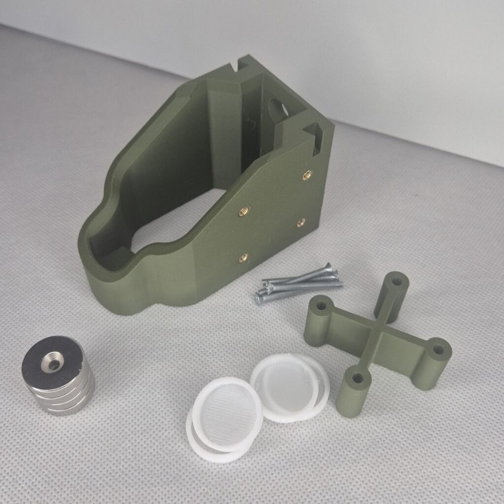 Jest to dystans w kształcie X z fazkami na śruby które w przypadku mocowania bez magnesów chowają główkę i do ściany przylega plastik. Jest dostępny w 3 kolorach Ciemny zielony, Pustynny, oraz Czarny wszystkie matowe.